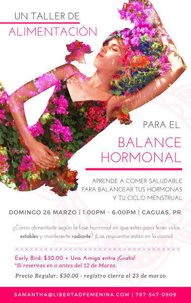 SamanthaLópezMuñiz-samalopez.com-Afiche-AlimentaciónBalanceHormonal Published May 7, 2017 at 379 × 600 Workshop Promotional Poster